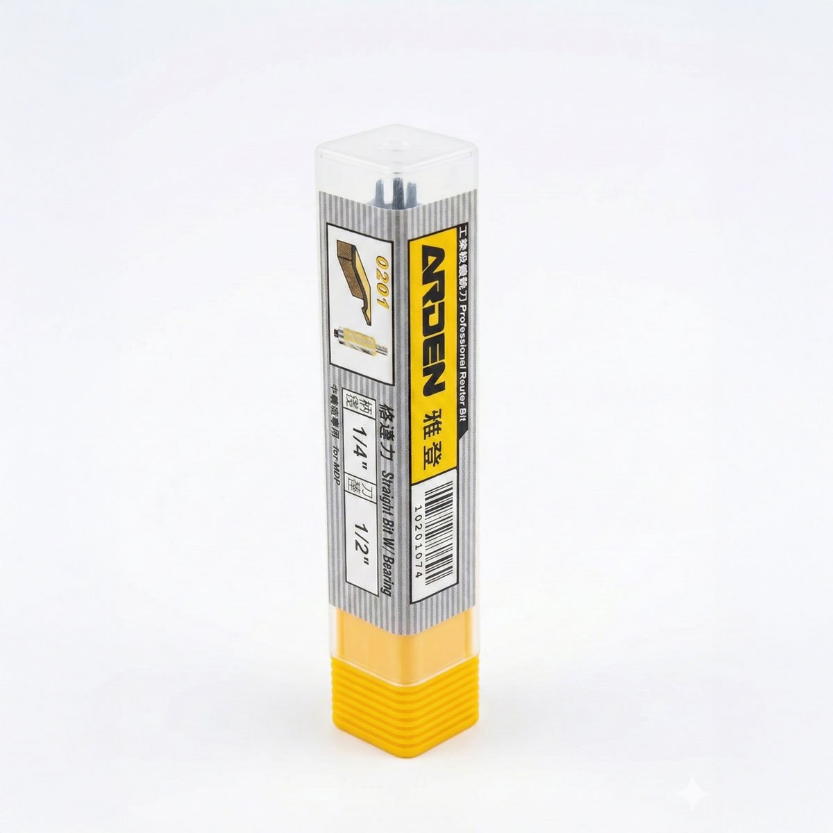 Fresa copiadora recta de carburo Arden con rodamiento superior, diseñada para trabajos de copiado con plantilla, rebajes y cortes rectos en madera, MDF, contrachapado y melamina.